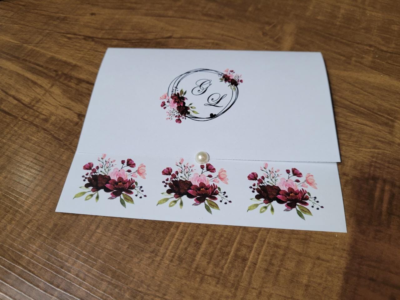 Convites para Casamento tamanho 14x20cm aberto. 12x14cm fechado com Meia Pérola personalizável com os dados do evento.