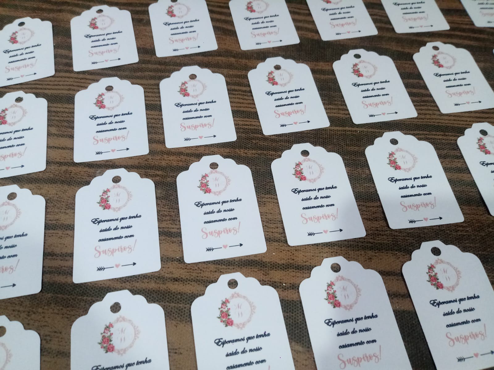 Tags Individual tamanho 4x7cm personalizável com os dados do evento.